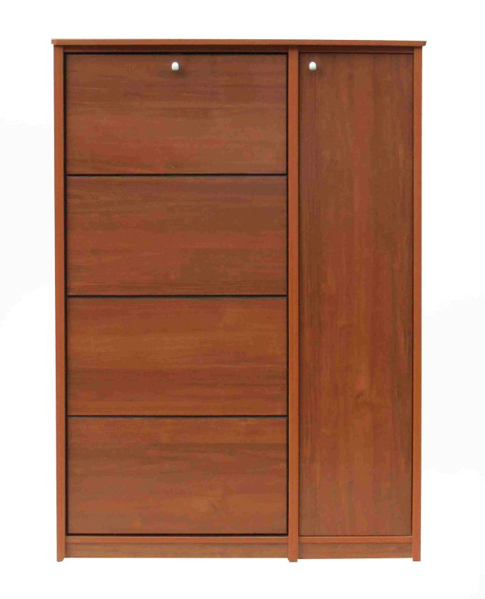 Обувной шкаф Клио изготовлен из ЛДСП 25мм (боковые стенки) и 16мм (верх, низ, топ, цоколь), обрамленная кромкой ПВХ толщиной 1мм и 0,4мм (с тыльной стороны).